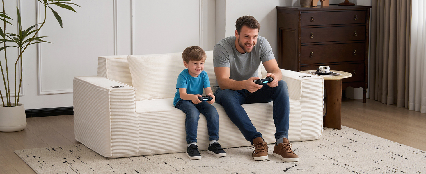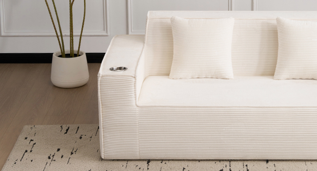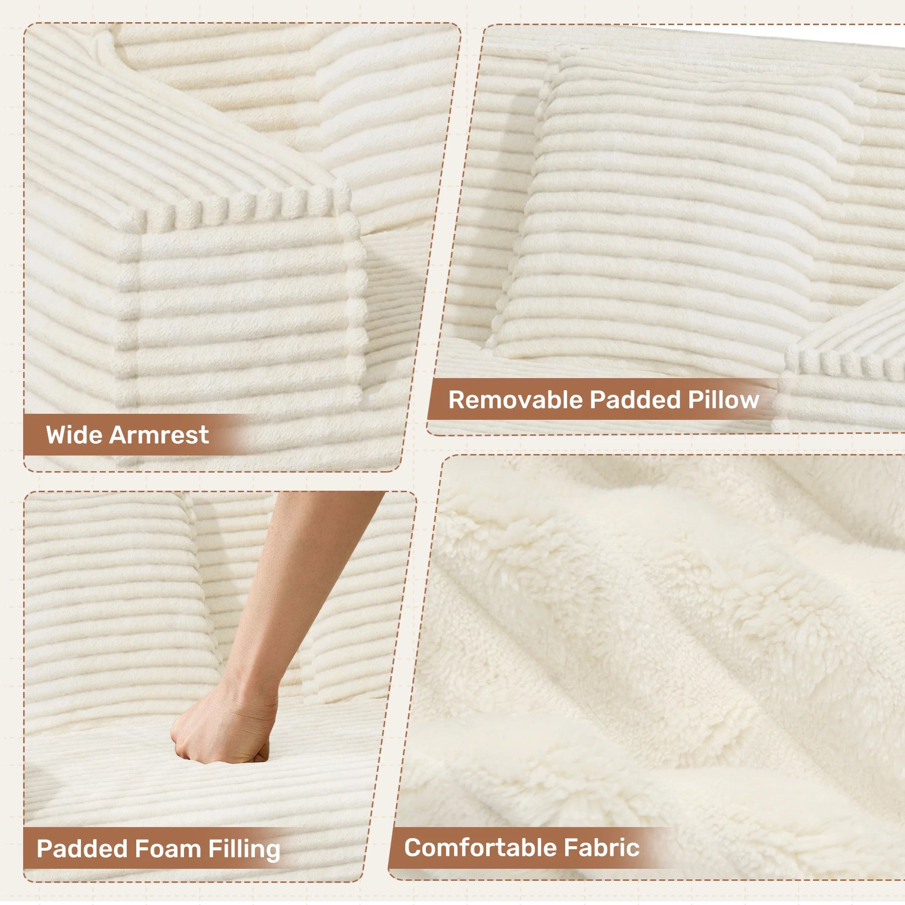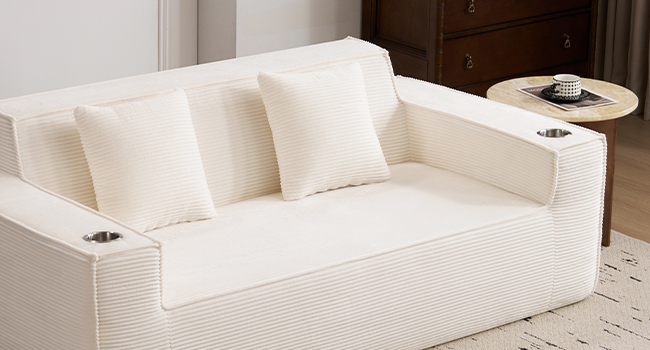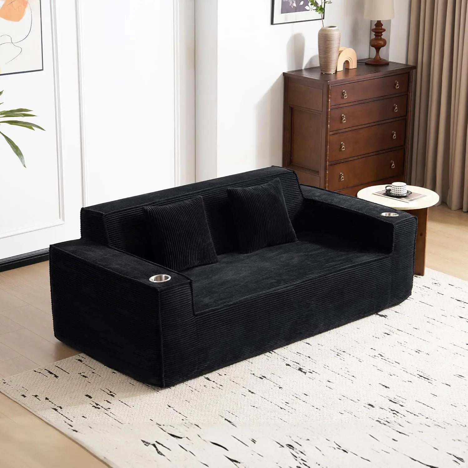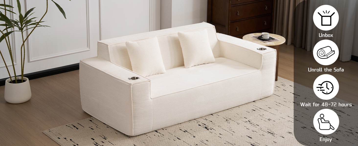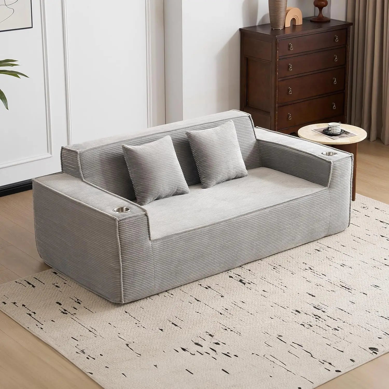 75'' Cloud Loveseat Sofa Boneless Couch with Cup Holder, No Assembly Required Comfy Deep Seat Couches Corduroy Sofa Couch