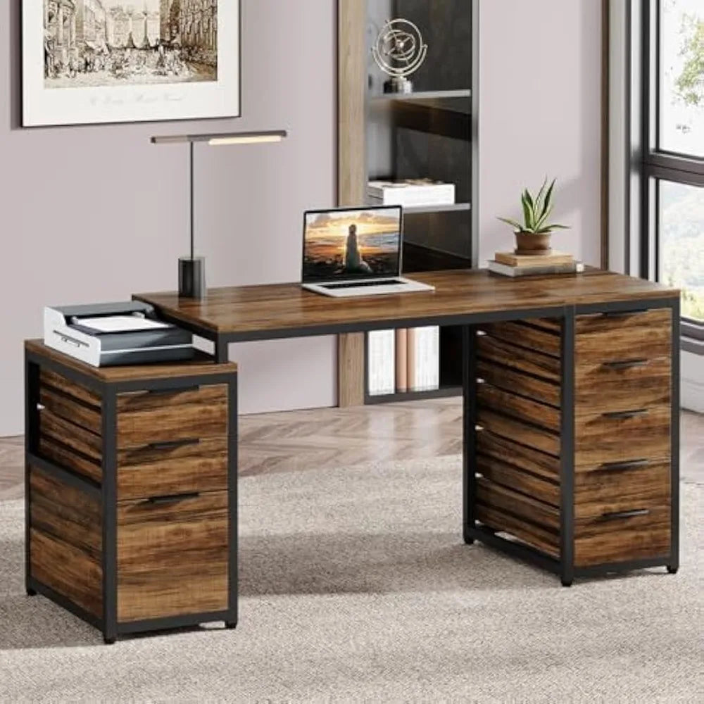 "8-Drawer 63-Inch Office Desk with Reversible File Cabinet and Storage"