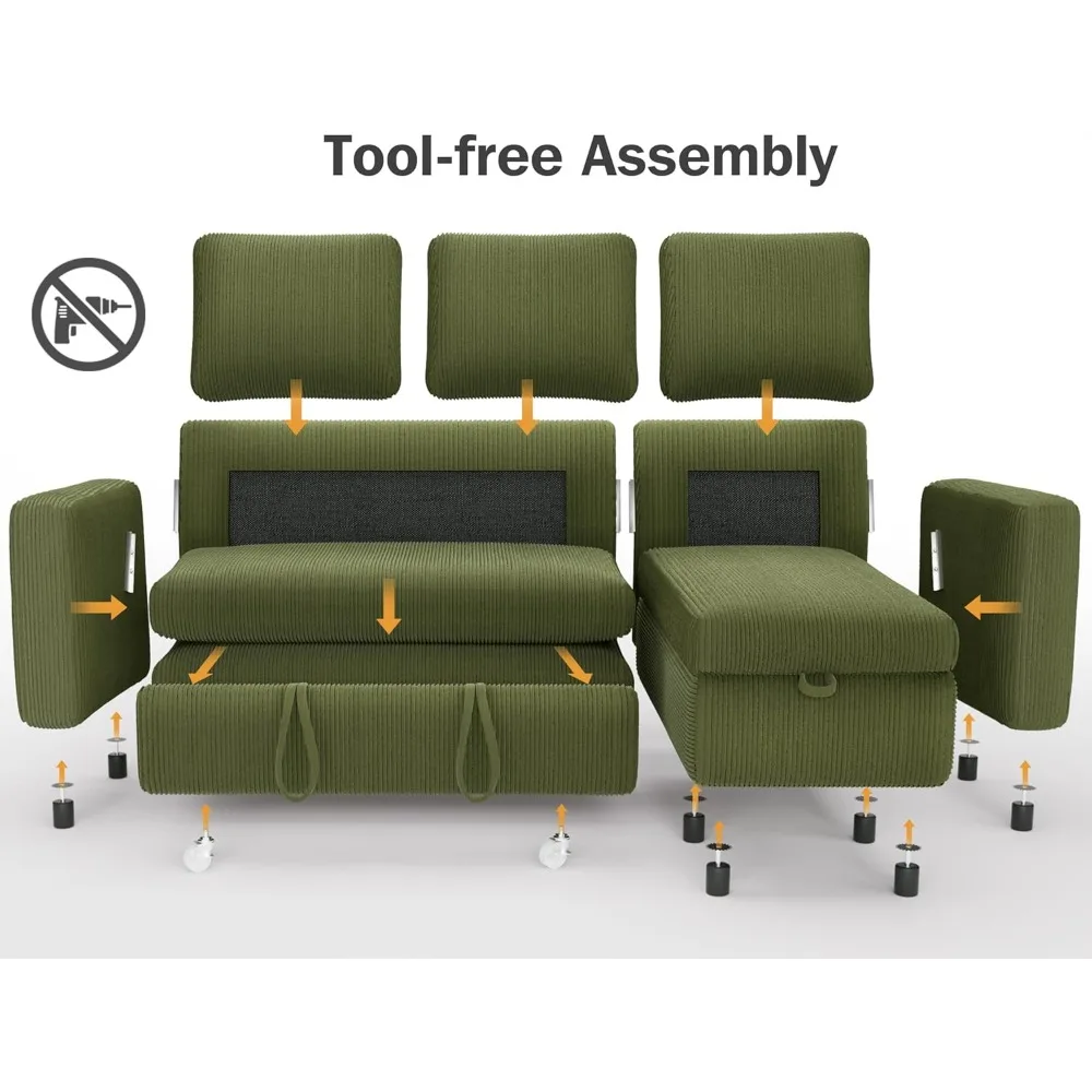- 【Tool-Free Assembly 2 packages】There are 2 packages in total and they may arrive on different day. Our sectional sleeper sofa is designed with tool-free assembly to save your time. Just do as manual with only 4 steps, in 10 minutes, then done!