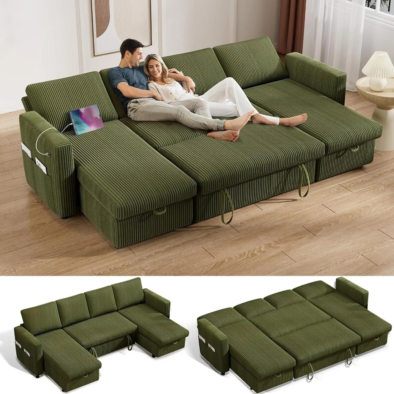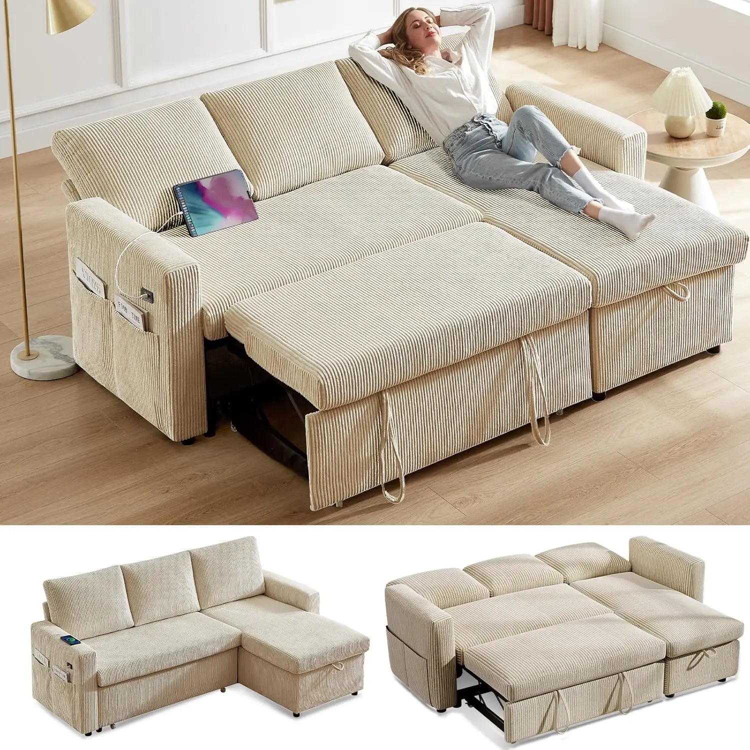 - 【3-In-1 Stylish Sleeper Sofa Bed】Upgrade your space with our sleeper sofa bed! Stylish seating or lounge by day easily converts to a comfortable bed by night, perfect for overnight guests and maximizing your space. This L shaped couch with pull out bed brings elegant style to your living room and blends well with any home décor.