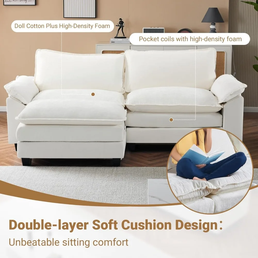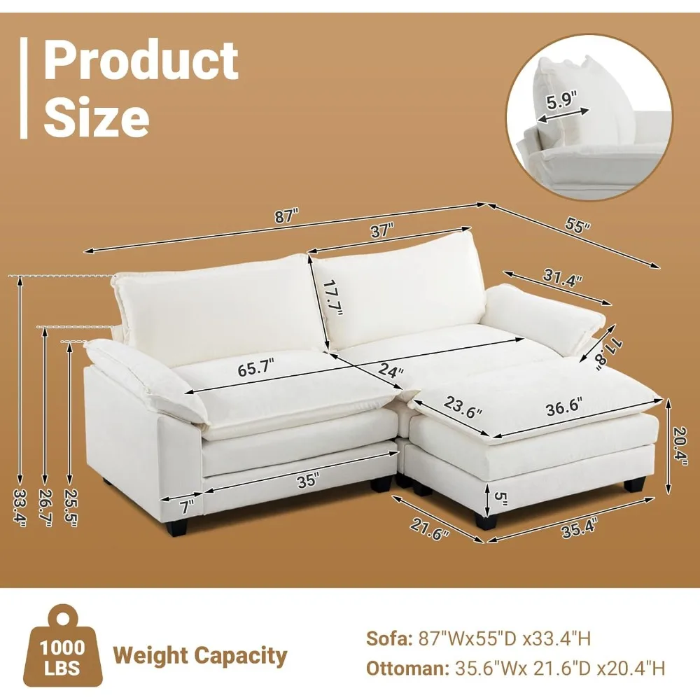 87" Convertible Sectional Sofa,L-Shaped Deep Seat Sofa Couch for Living Room,Modern 2-Seat Loveseat Sofa with Ottoman for Small