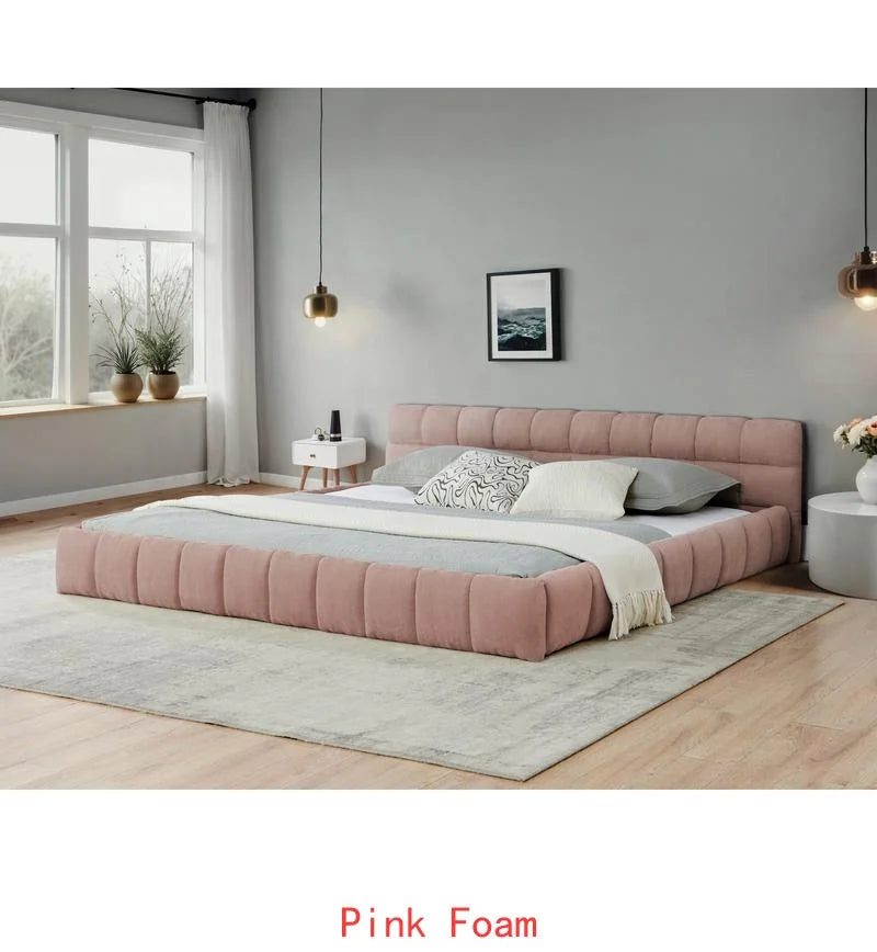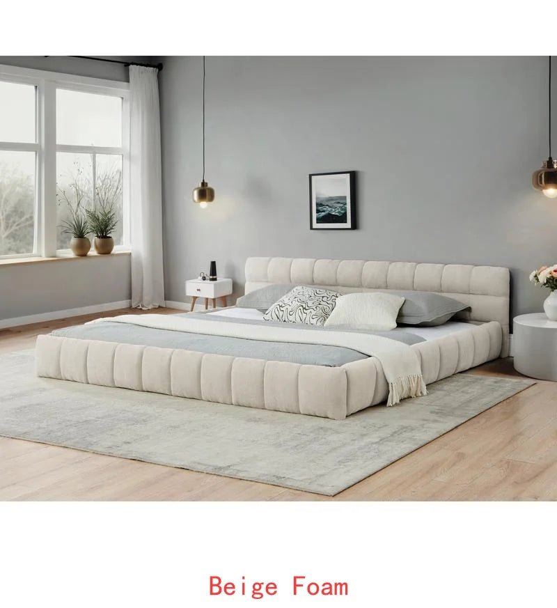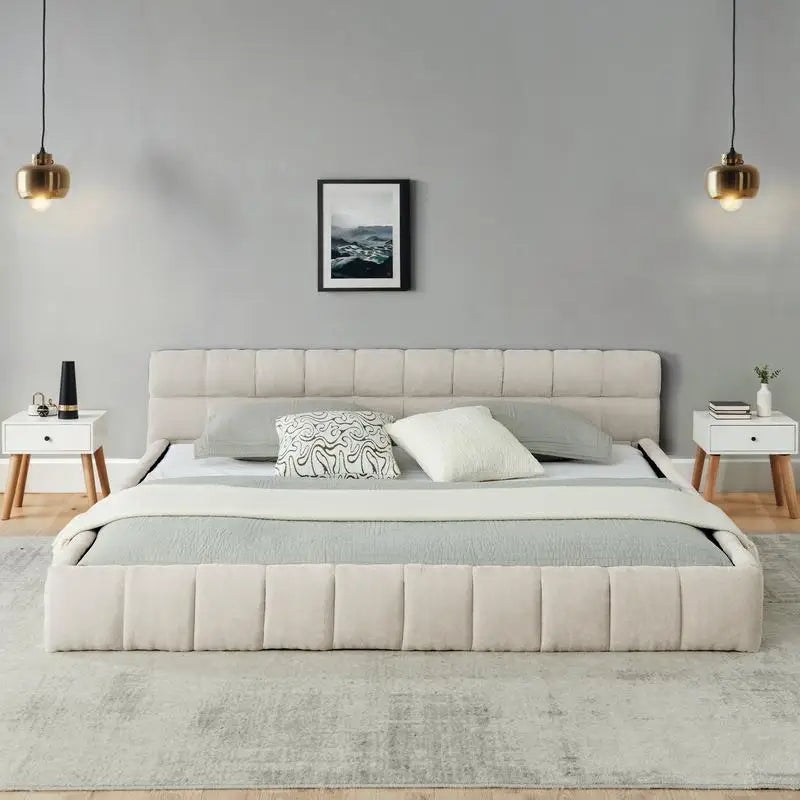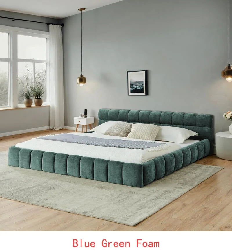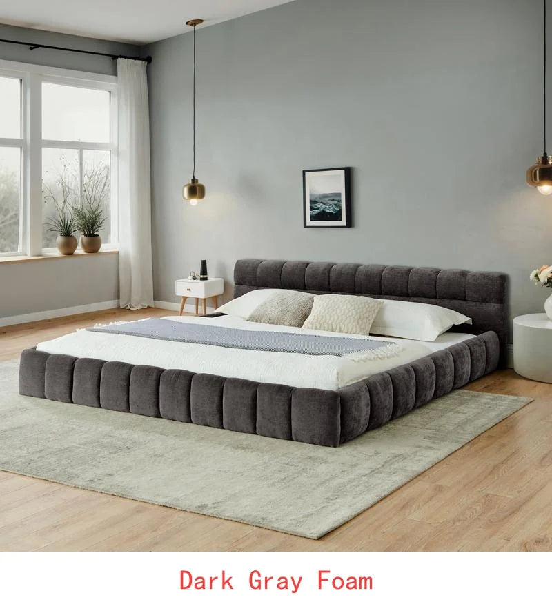 [Unique Grounded California King Size Bed] - This grounded upholstered bed will be both a beautiful piece in the room and a place full of fun for your family. This beautiful modern King bed frame adds a contemporary chic look to your bedroom and is upholstered in thick chenille fabric to add extra comfort.