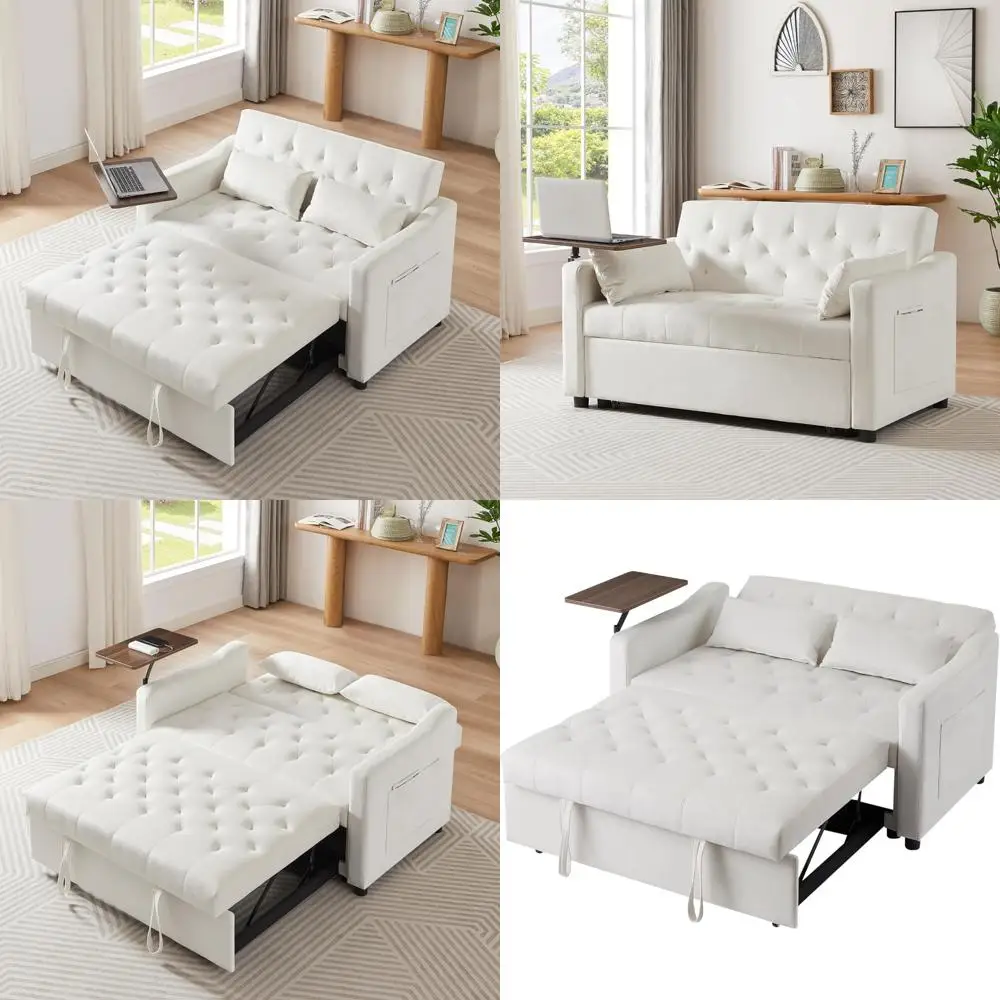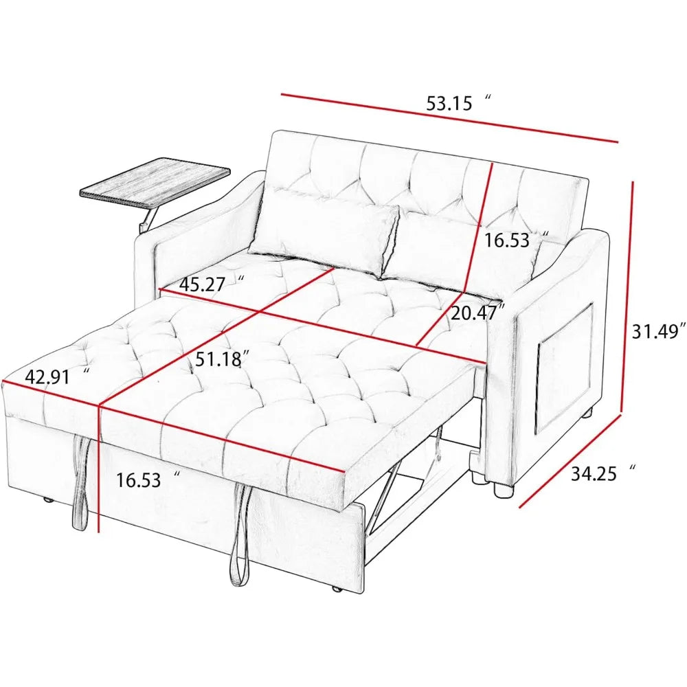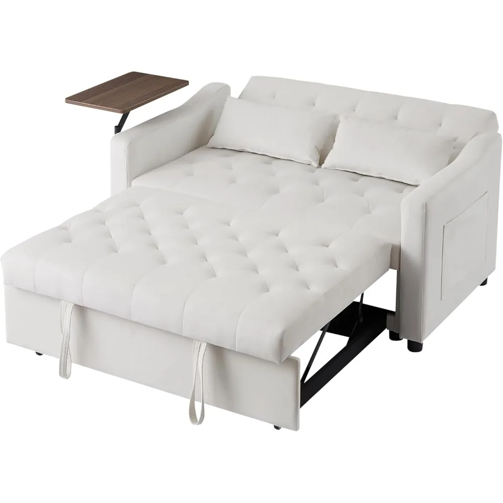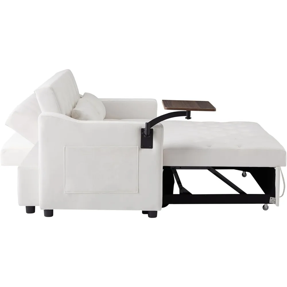 Convertible Sleeper Sofa Bed with Pullout Couch, 360° Swivel Side Table, Modern Chenille Fabric, Easy Assembly, Folding Design f