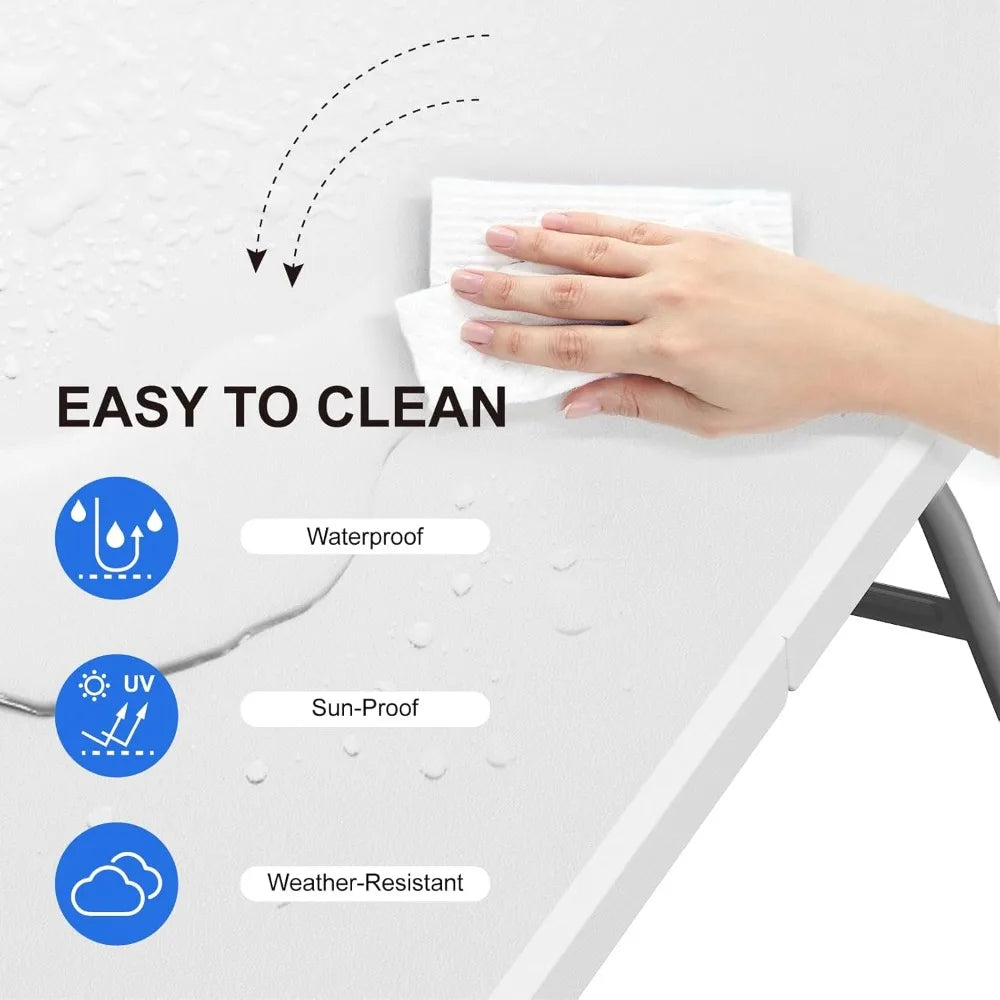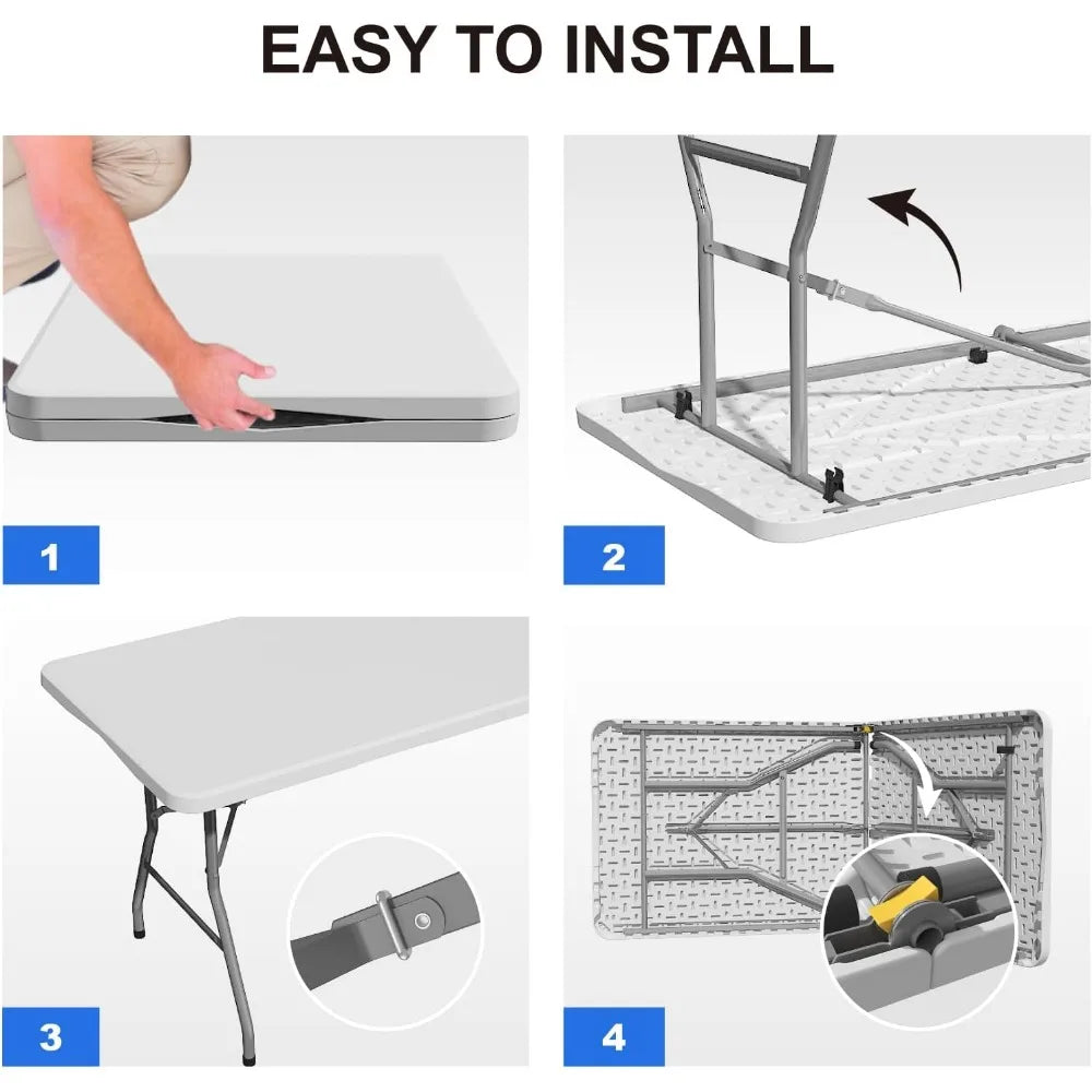 - No Installation Required: You don't need to put extra effort into assembling this 6 ft folding table, just unfold it and you can get a perfect picnic table.The folding tables powder-coated surface is waterproof and can be cleaned and maintained easily
