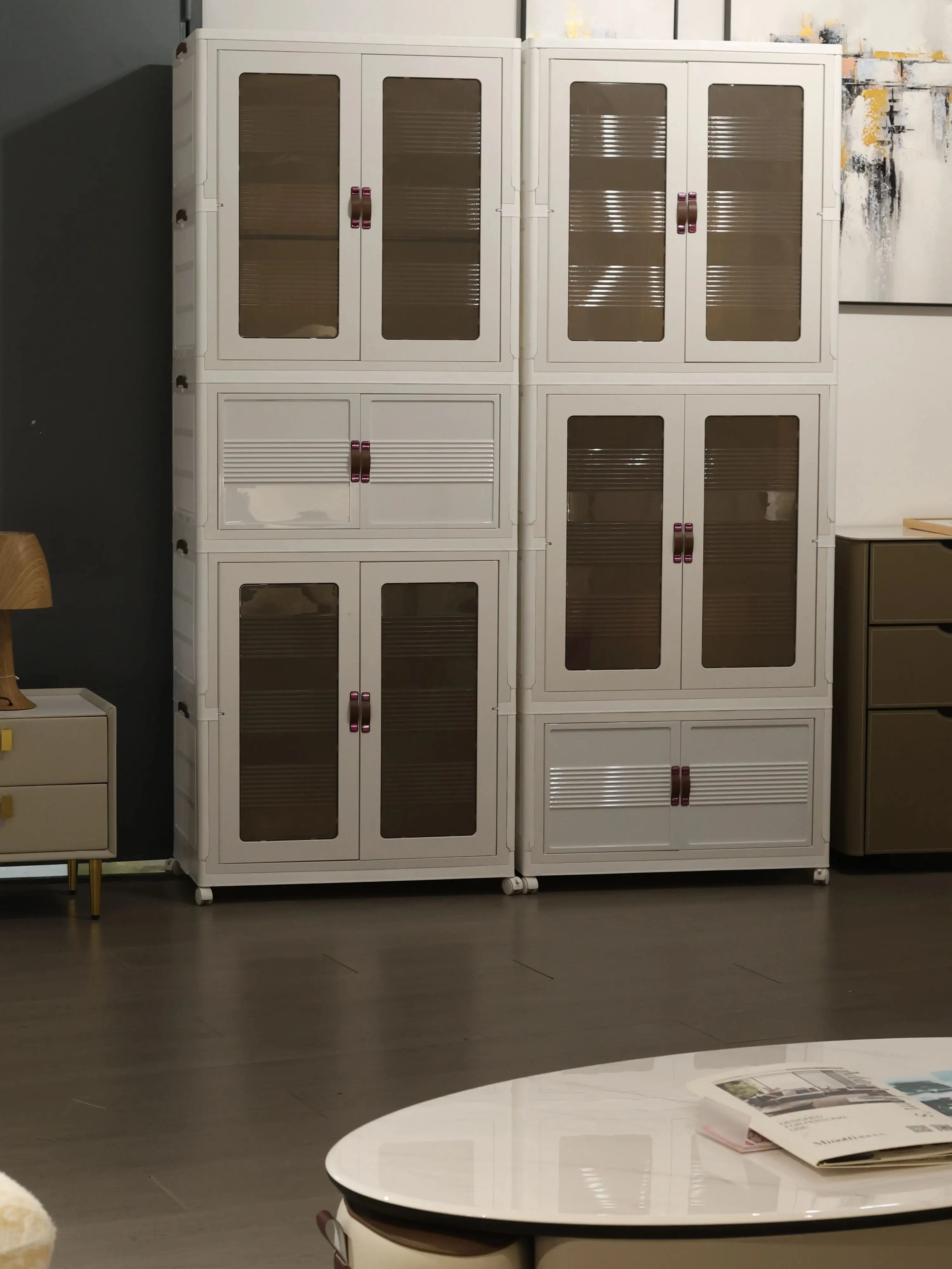 Strong plastic + smart universal wheels, durable and convenient: Selected high-strength plastic material, wear-resistant and anti-fall, super bearing capacity, and safe protection of every treasure of yours. The silent universal wheels at the bottom turn the locker into a "mobile assistant" in seconds. Whether it is changing rooms to organize items or temporarily adjusting the layout, just push it and it will be done easily.