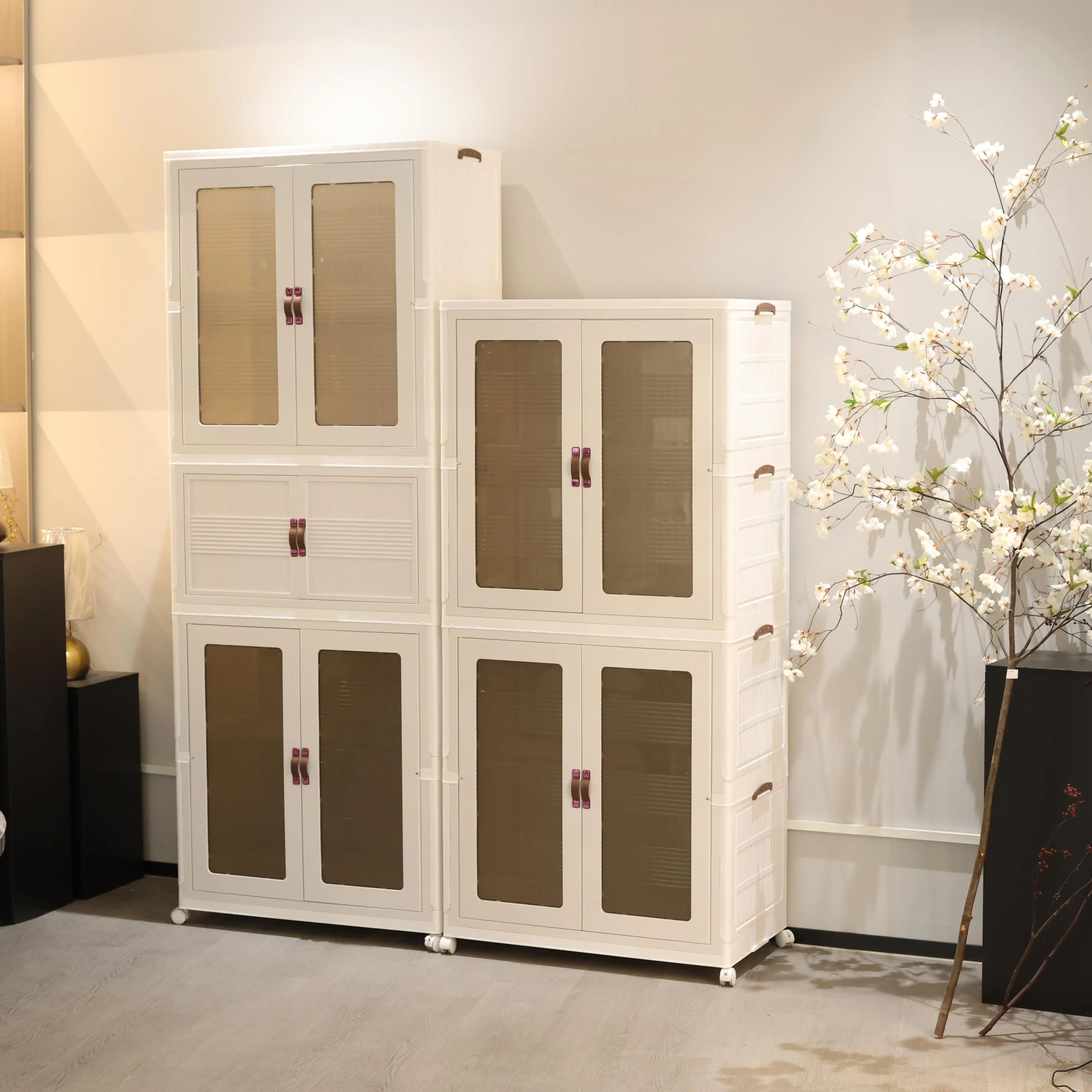 Multi-layer folding magnetic door storage wardrobe: universal wheels + large capacity unlocks a new realm of home storage!