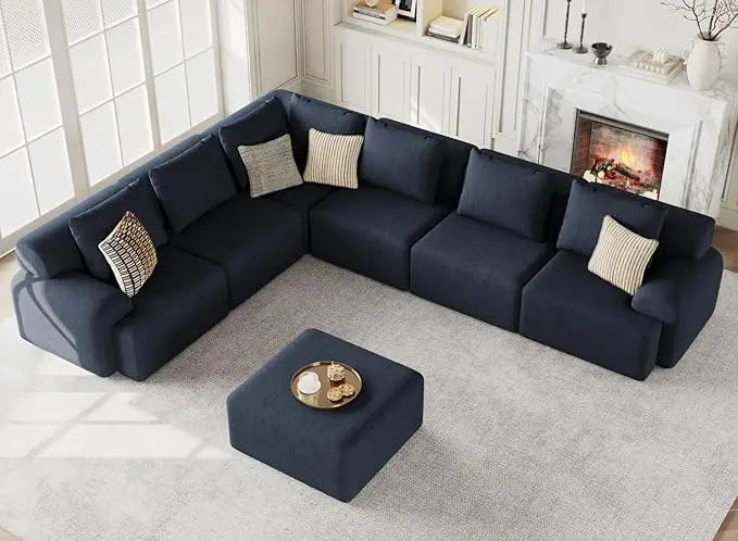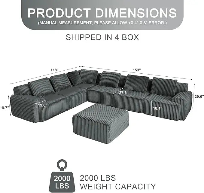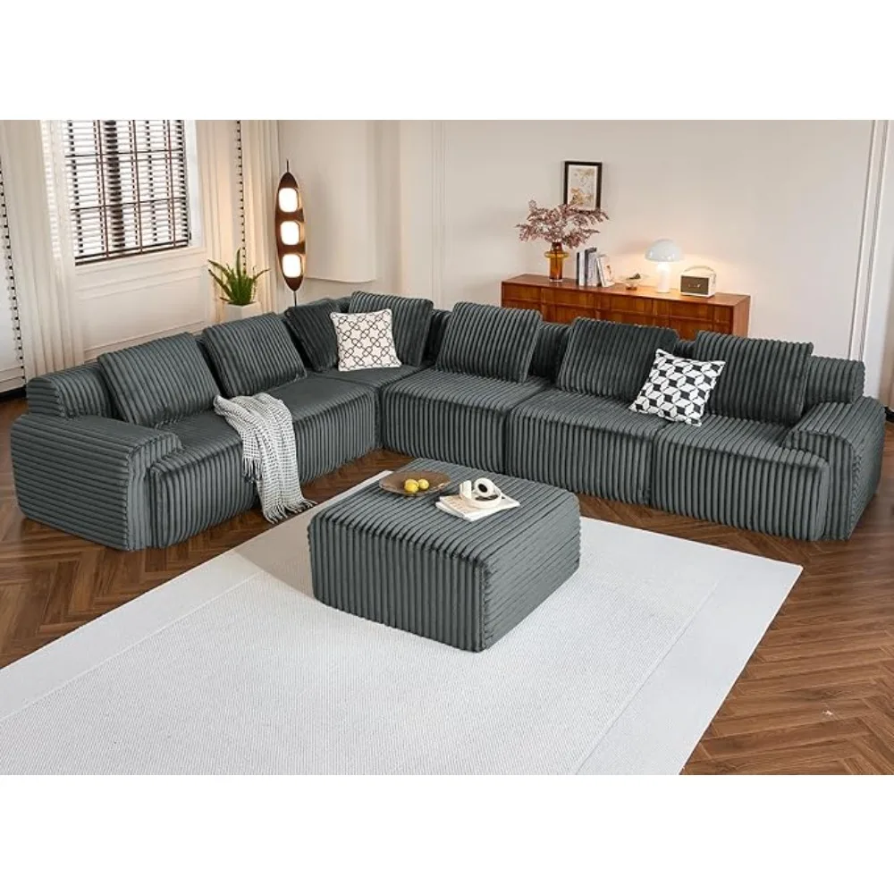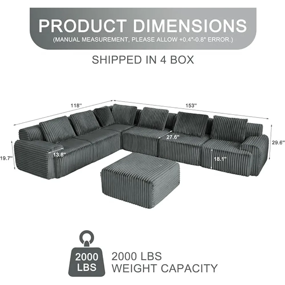 Oversized Boneless Couches for Living Room, V-Shaped 7-Seat Sofa Modular Sectional Sofa, Plush Corduroy Sectional Couches