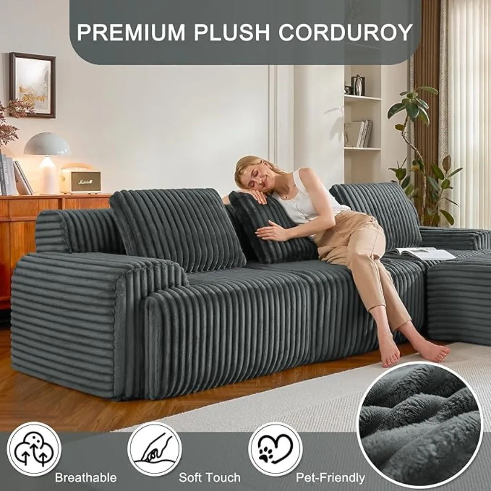 - PREMIUM CORDUROY COMFORT: Wrapped in ultra-soft corduroy, this cloud couch feels as cozy as it looks. The textured fabric finish adds warmth and charm while staying breathable and skin-friendly for all-day lounging