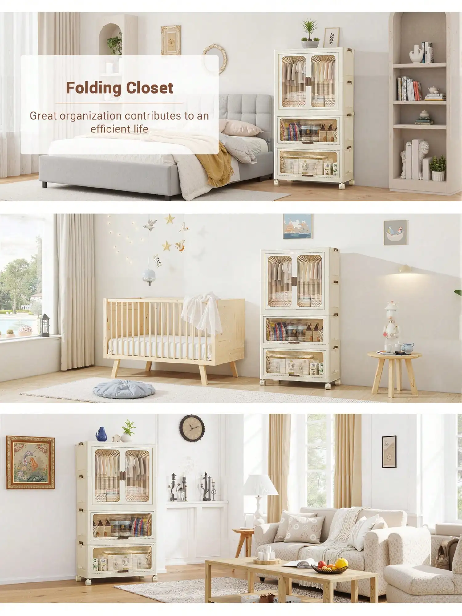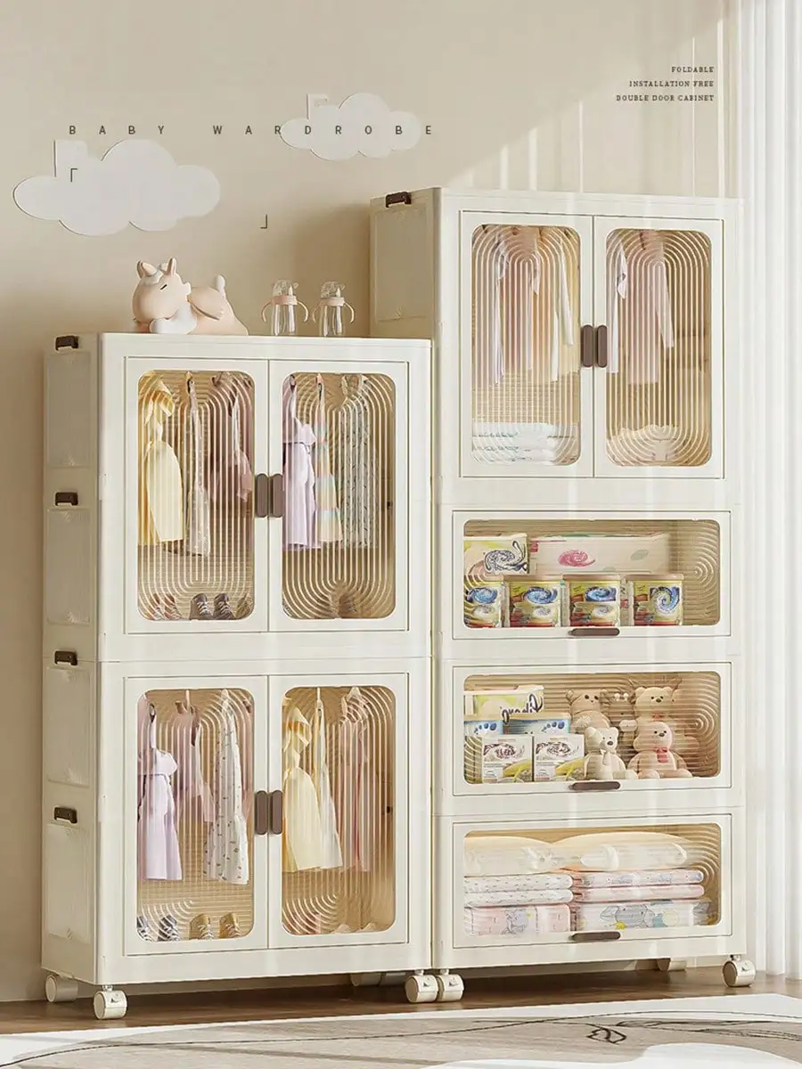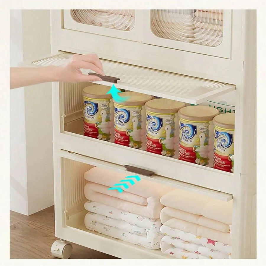 Plastic Wardrobe Closet, 27.6" Wide Stackable Storage Bins With Lids, Multi-layer Collapsible Storage Drawer Bin with Wheels