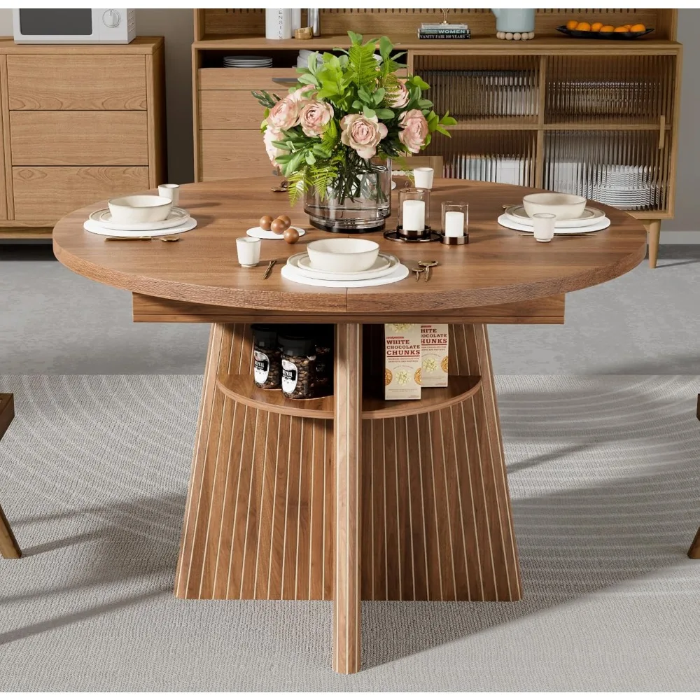 Round Expandable Dining Table, 43-59 Inches, Seats 4-8, Modern Oval Kitchen Table with Fluted Base