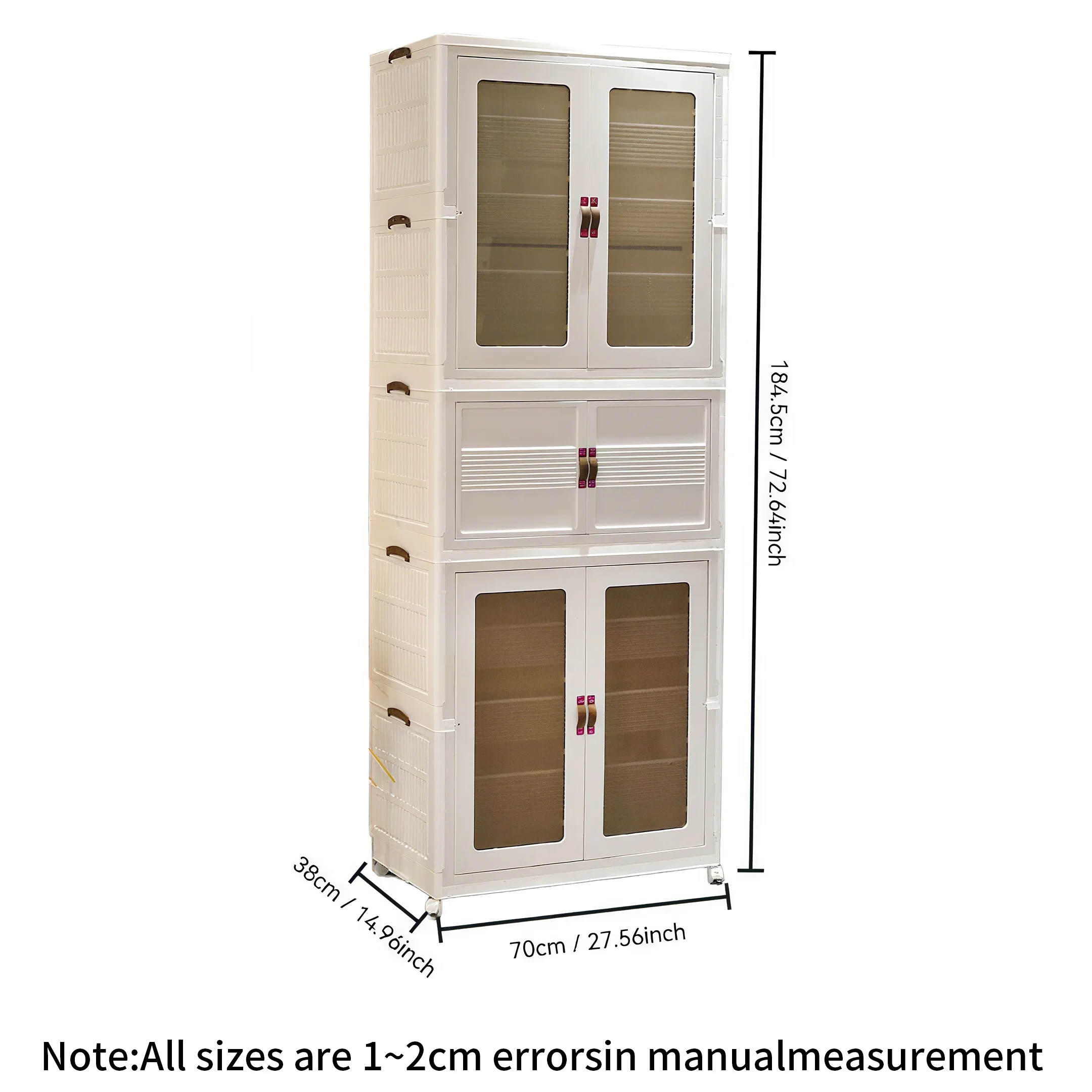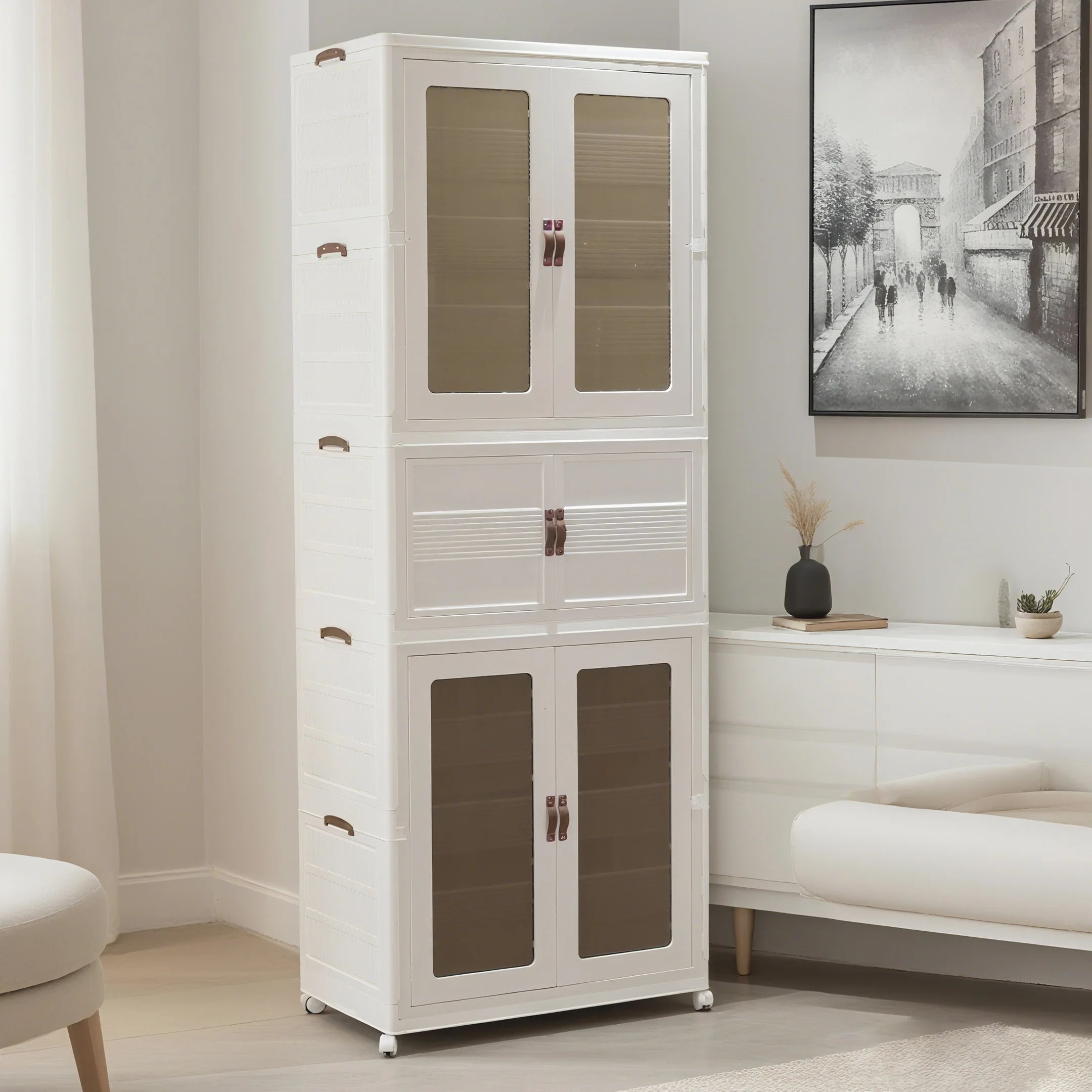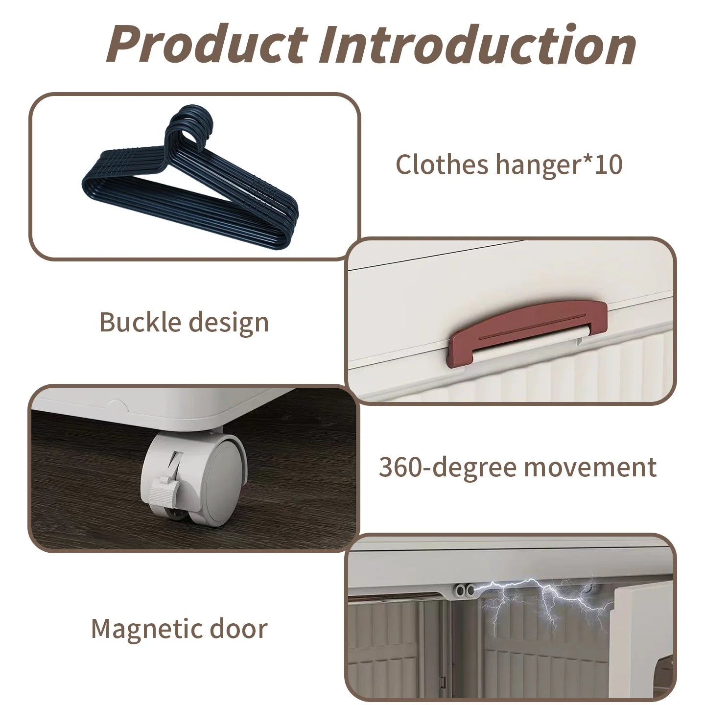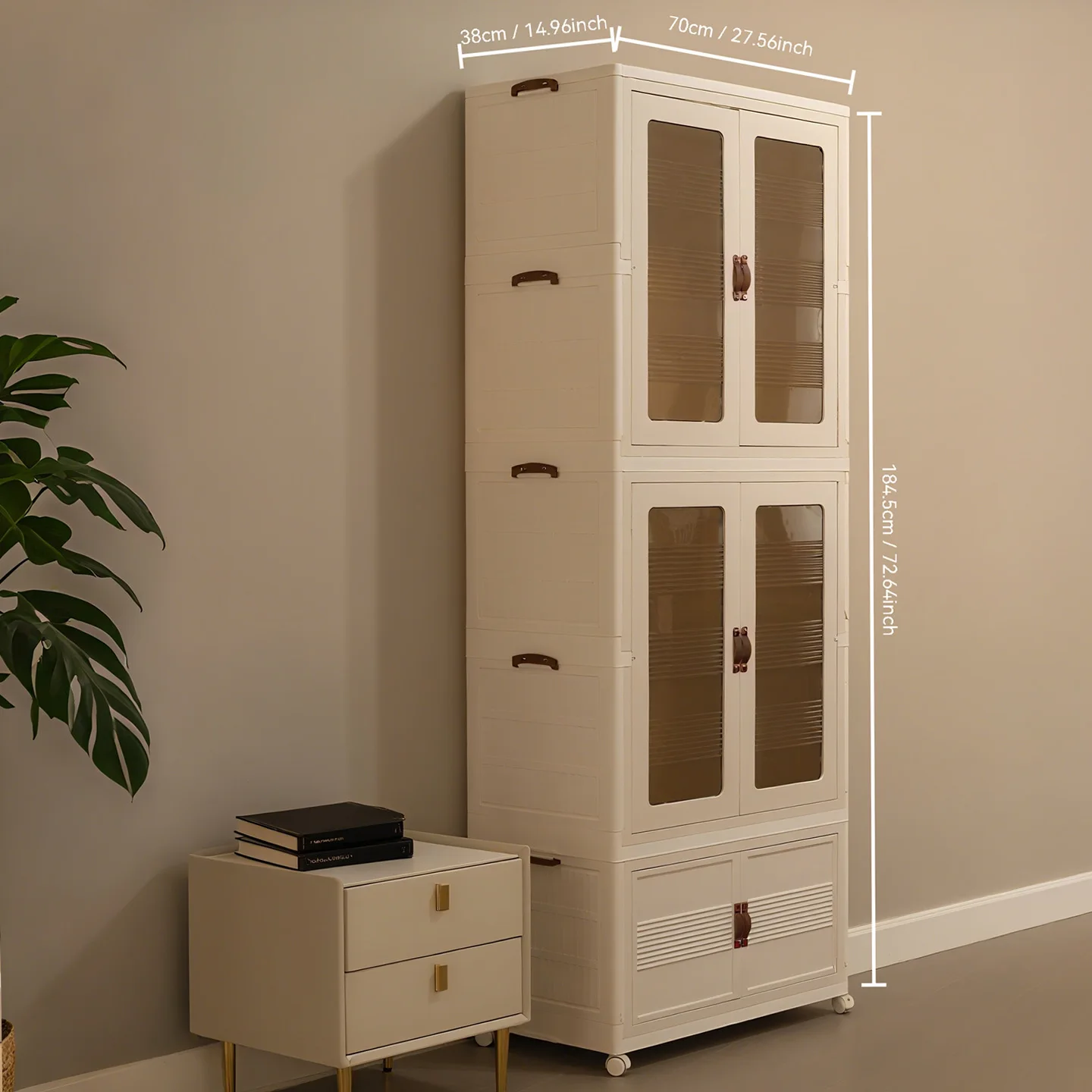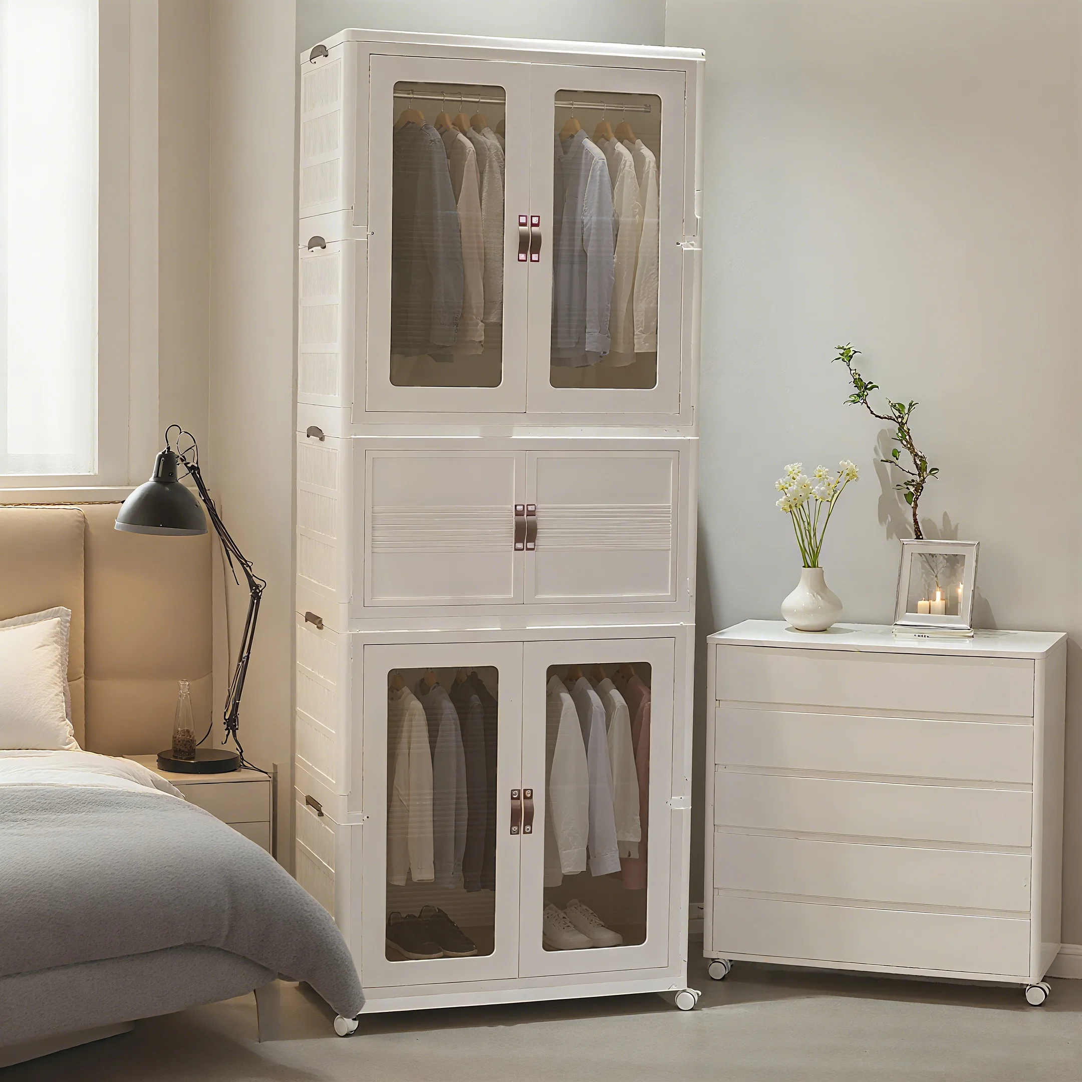 Stackable storage box with wheels, foldable storage box with doors, suitable for home and office, rental house, apartment wardro