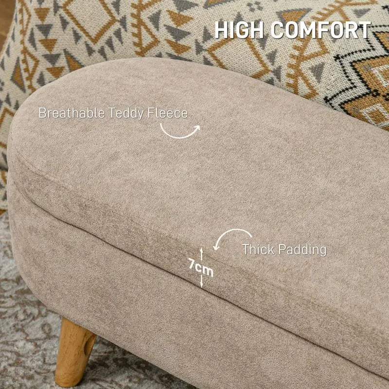 Storage Ottoman Bench, 43.3" Teddy Fleece Upholstered End of Bed Bench with Wooden Legs and Padded Seat, Oval Modern Entryway