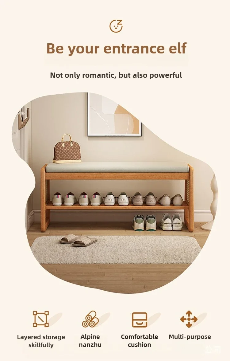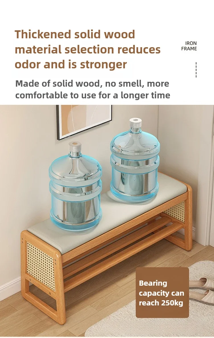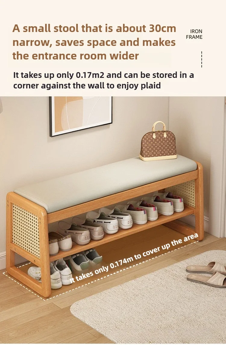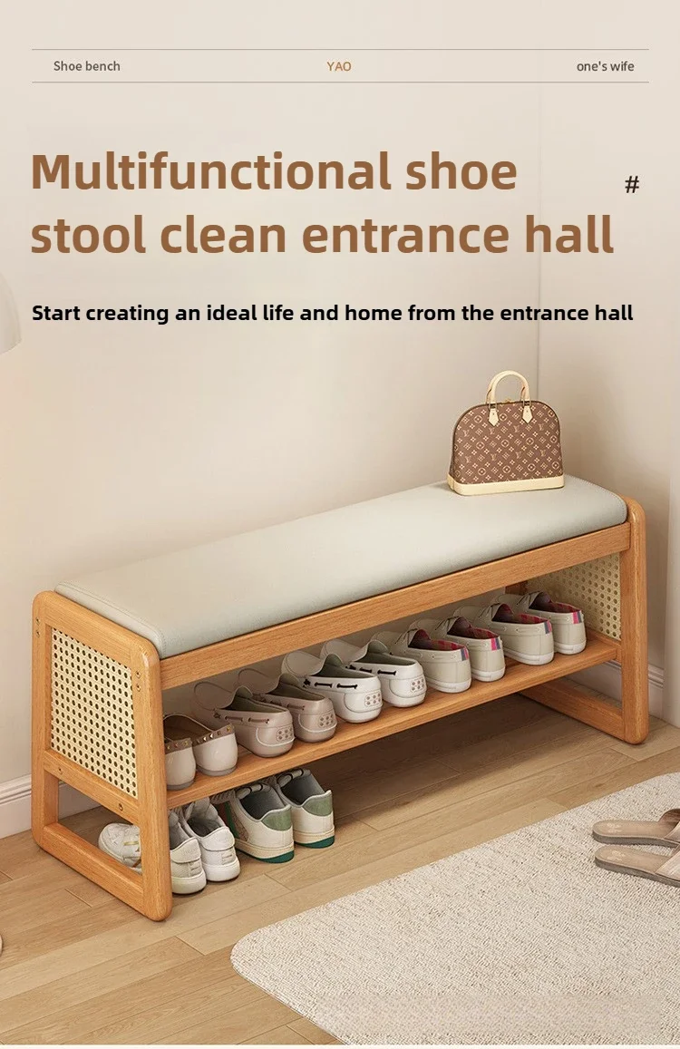Teng woven shoe changing stool, entrance door, home door, multi-layer storage, solid wood, can sit on shoe stool