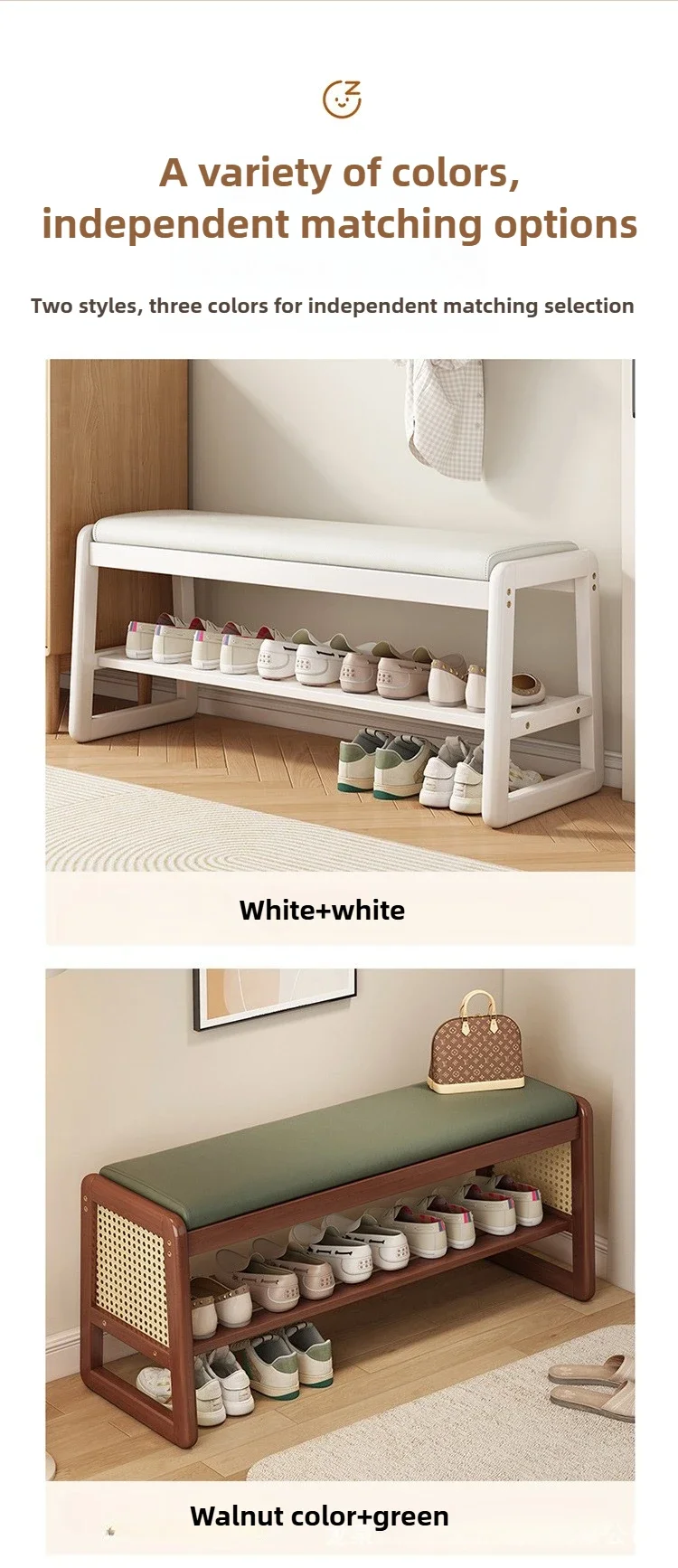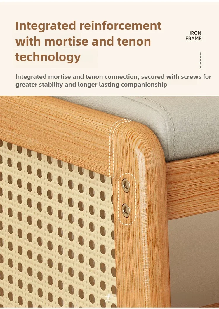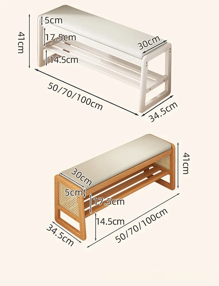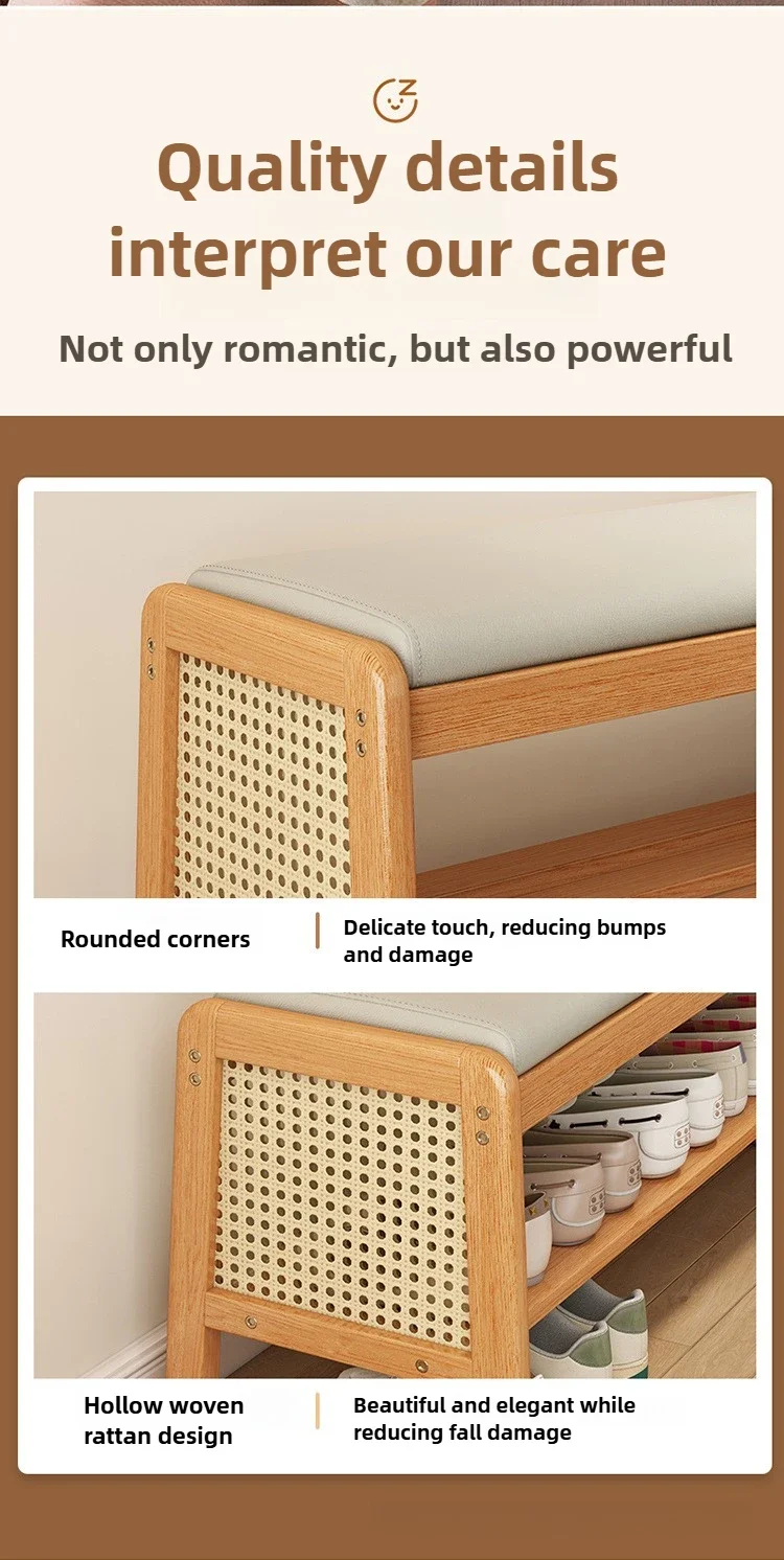Teng woven shoe changing stool, entrance door, home door, multi-layer storage, solid wood, can sit on shoe stool